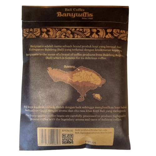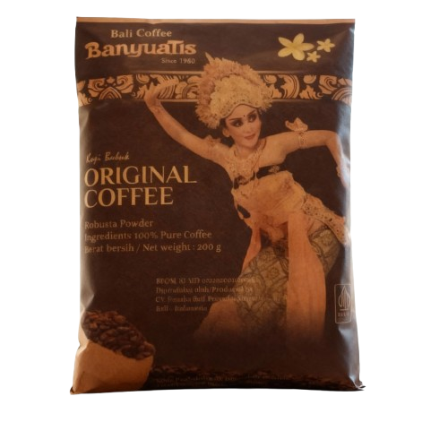 100% Kopi Bali Asli, dengan cita rasa kopi Robusta pilihan yang otentik.